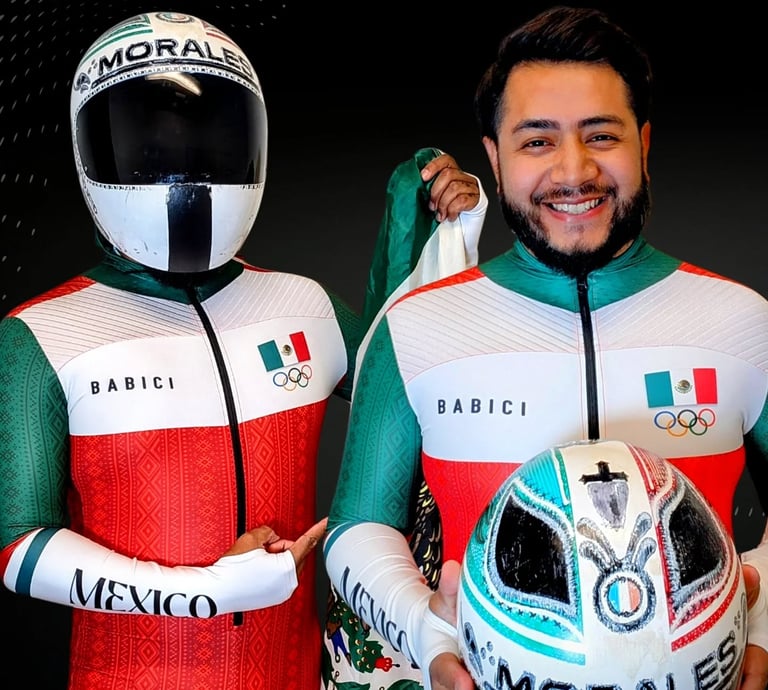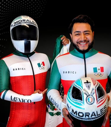 A proud Mexican athlete chasing Olympic dreams in skeleton racing.